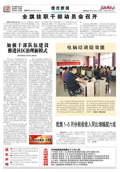 本报讯(记者 王晓丽) 6月19日,旗委副书记、旗长王兵调研210国道马兰滩运煤沿线段...